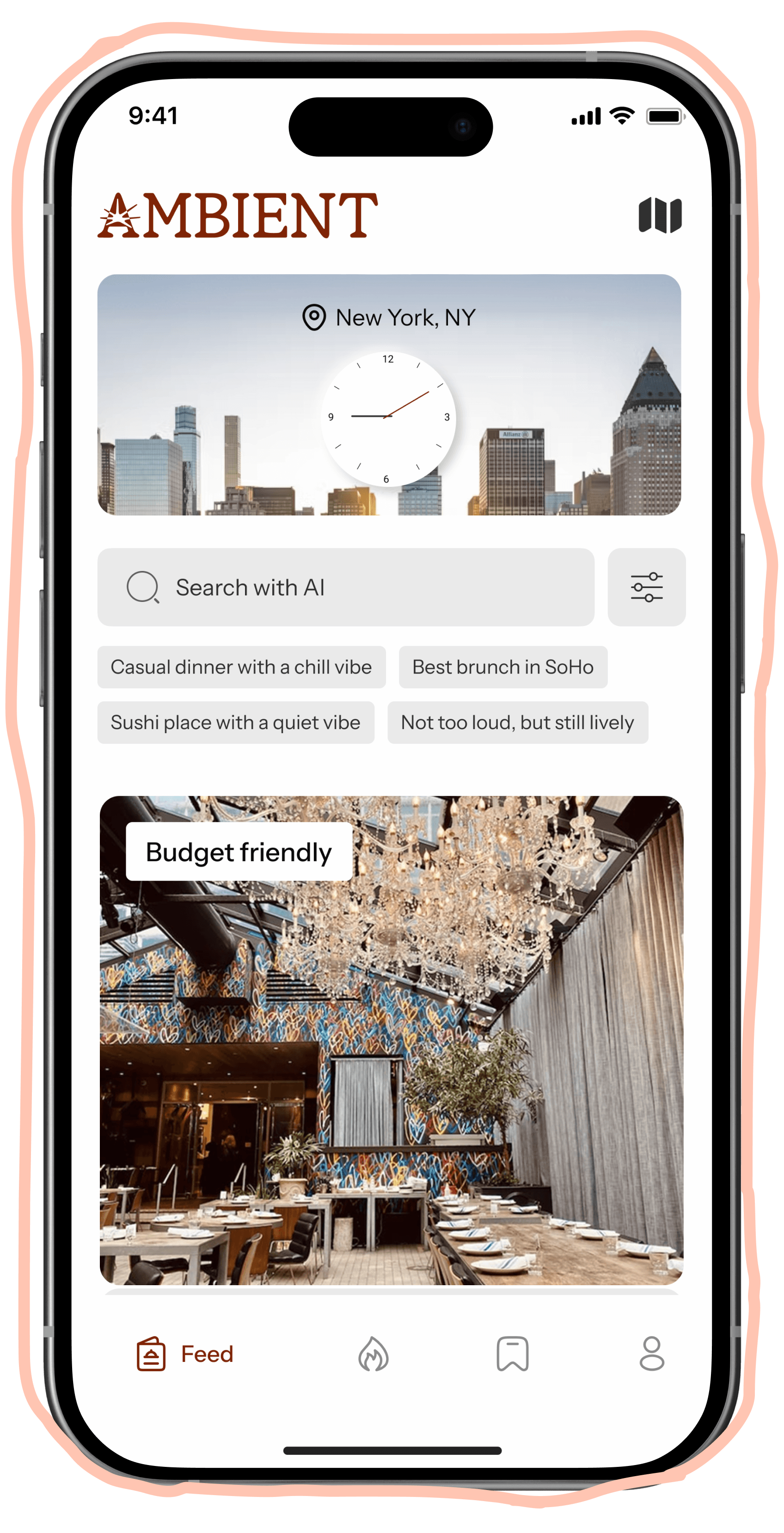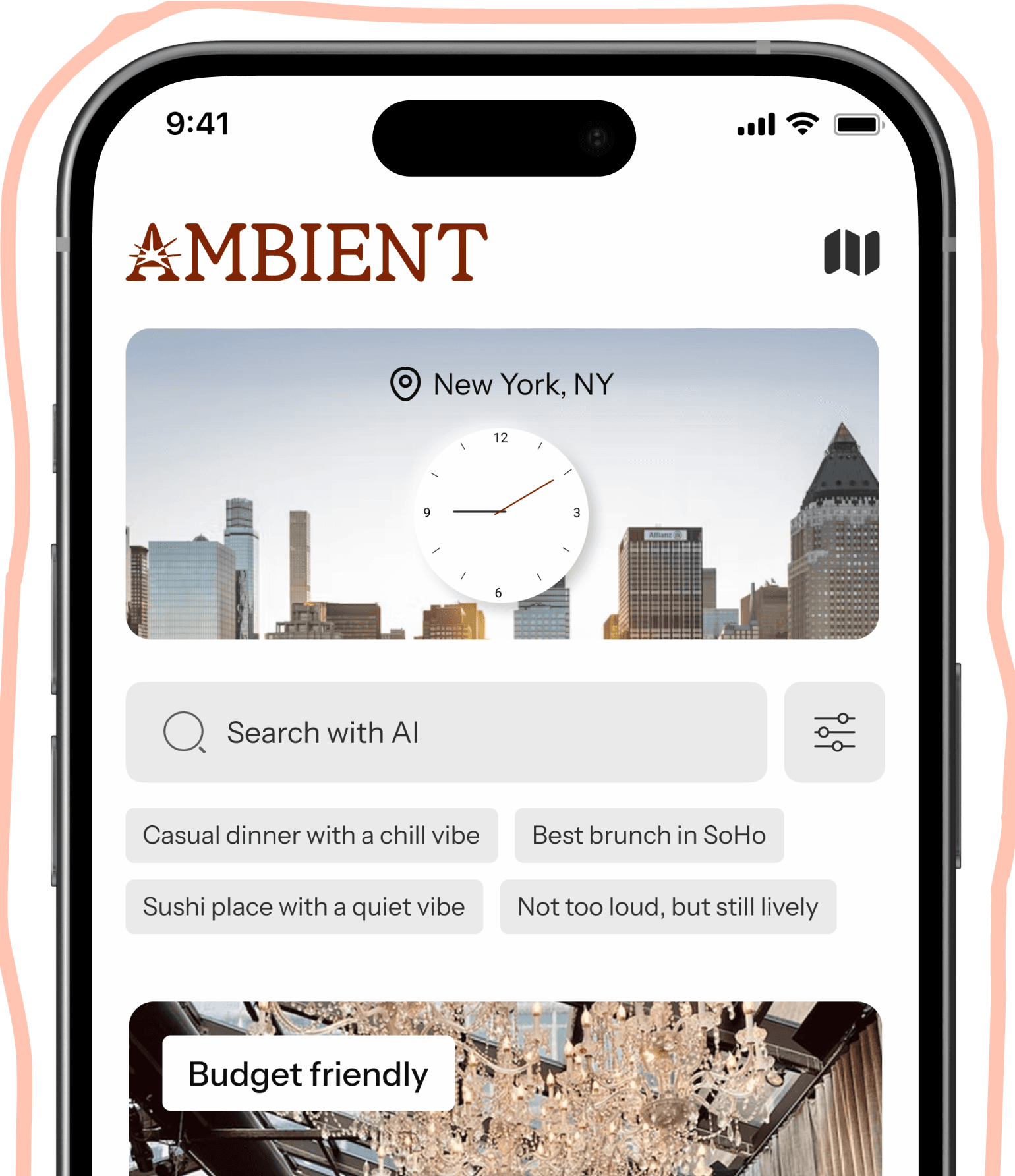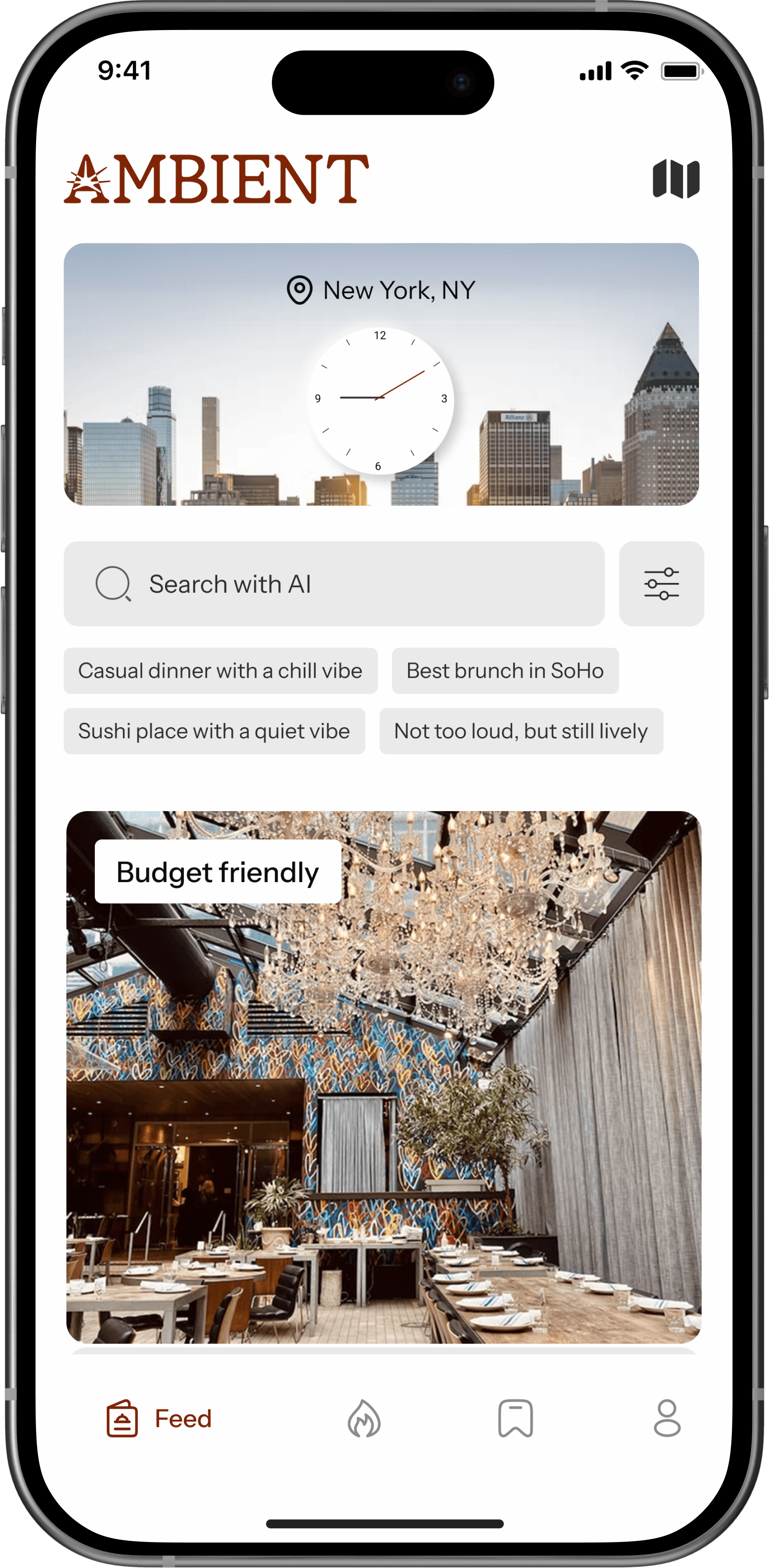 Search for “date spot in the West Village” or “casual dinner, not too loud.” AMBIENT turns vague moods into actual places.